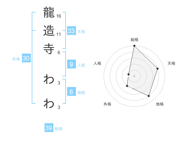 龍造寺 わわさんの総格は39画の5点!