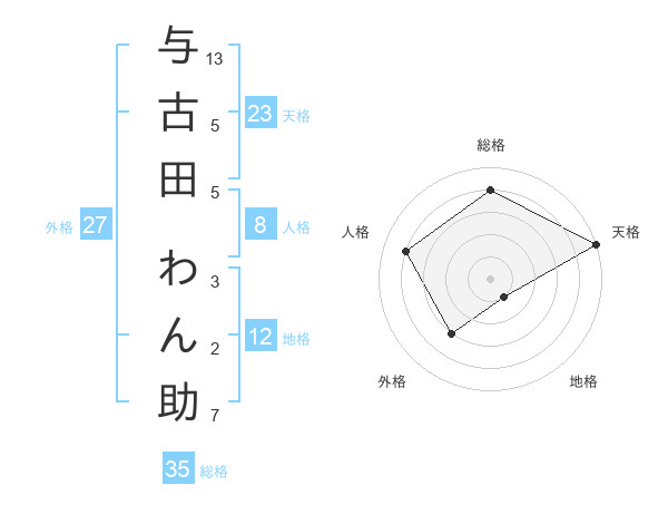 与古田 わん助さんを姓名の画数から五運を鑑定