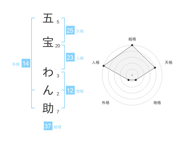 五宝 わん助さんを姓名の画数から五運を鑑定