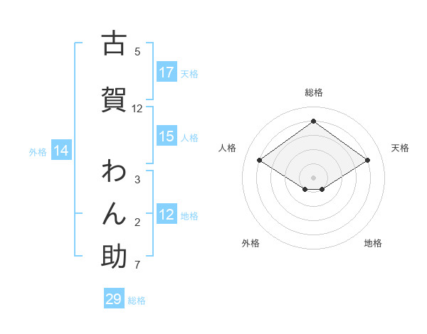 古賀 わん助さんの総格は29画の4点!