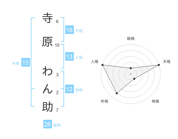 寺原 わん助さんを姓名の画数から五運を鑑定