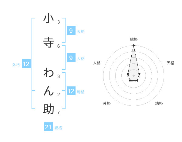 小寺 わん助さんの総格は21画の5点!