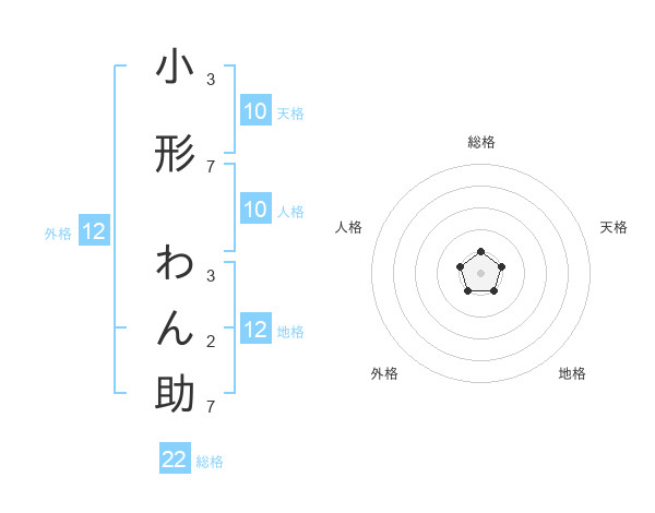 小形 わん助さんの総格は22画の1点!