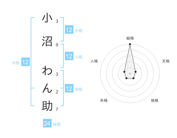 小沼 わん助さんを姓名の画数から五運を鑑定