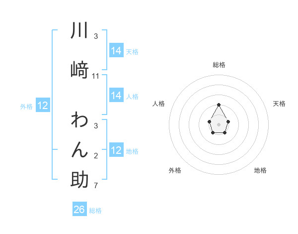 川﨑 わん助さんの総格は26画の2点!