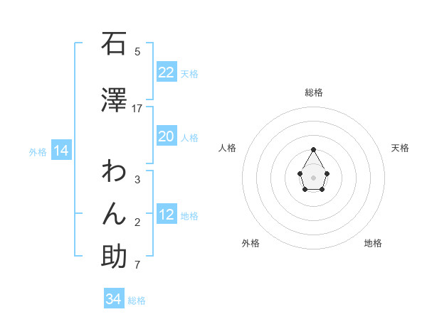 石澤 わん助さんを姓名の画数から五運を鑑定