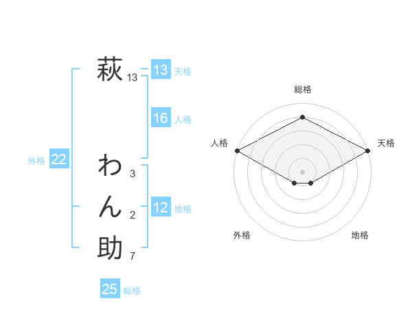 萩 わん助さんの天格は13画の5点!