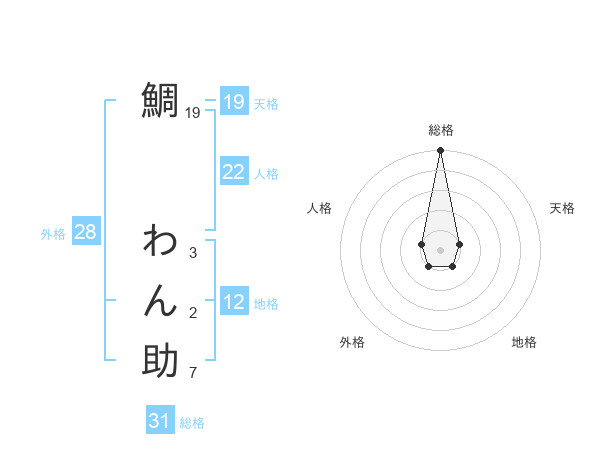 鯛 わん助さんを姓名の画数から五運を鑑定