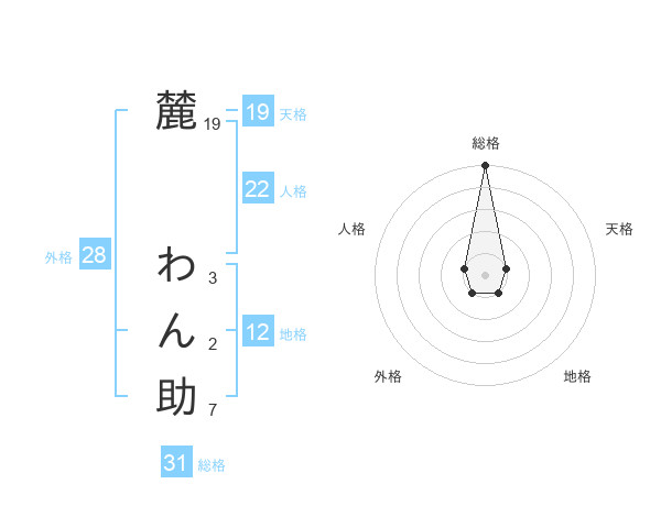 麓 わん助さんの総格は31画の5点!