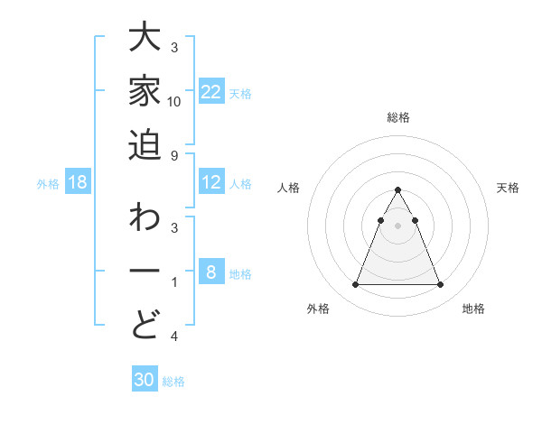 大家迫 わーどさんを姓名の画数から五運を鑑定