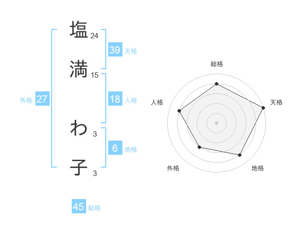 塩満 わ子さんの天格は39画の5点!