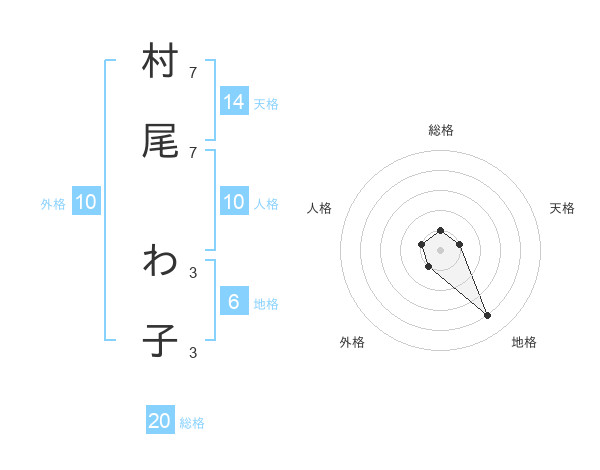 村尾 わ子さんを姓名の画数から五運を鑑定
