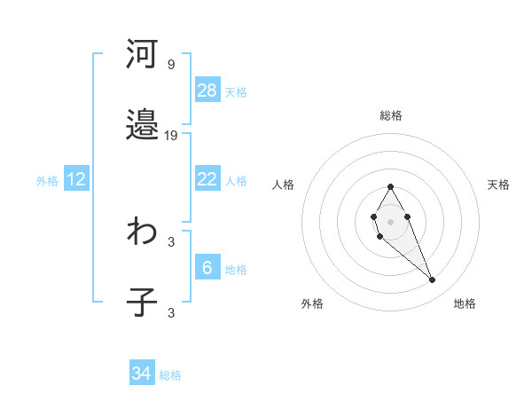河邉 わ子さんを姓名の画数から五運を鑑定
