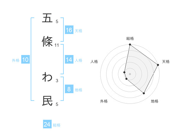 五條 わ民さんの総格は24画の5点!