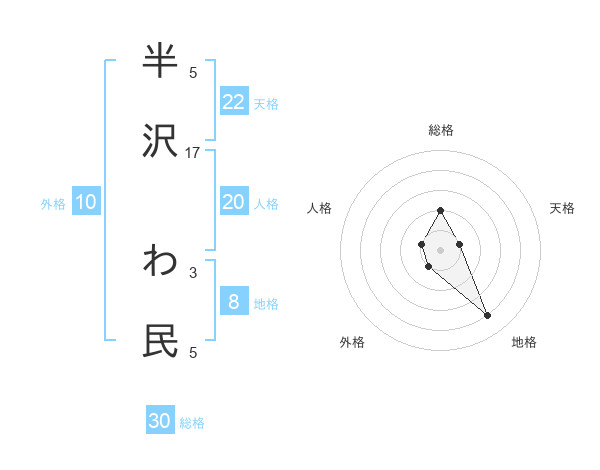 半沢 わ民さんを姓名の画数から五運を鑑定