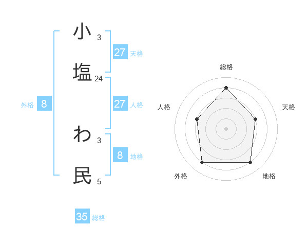 小塩 わ民さんの人格は27画の3点!