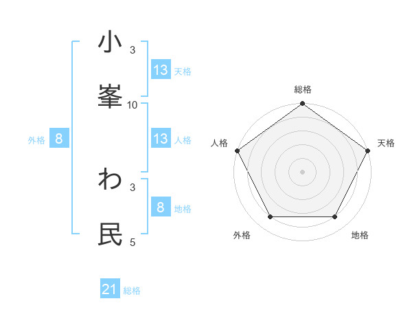小峯 わ民さんを姓名の画数から五運を鑑定