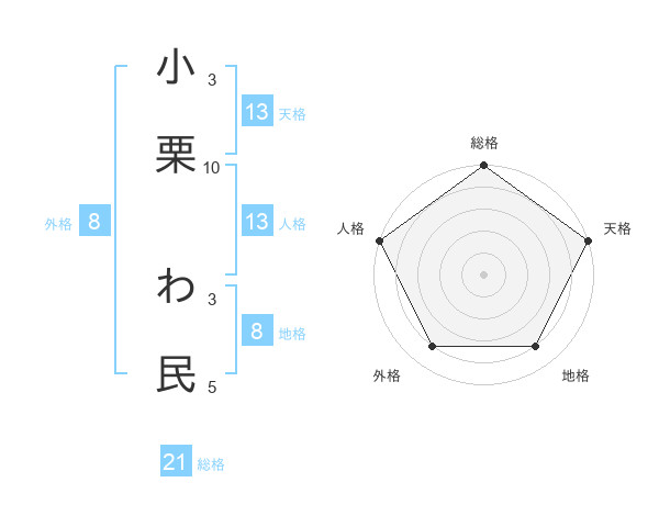 小栗 わ民さんを姓名の画数から五運を鑑定