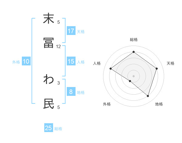 末冨 わ民さんを姓名の画数から五運を鑑定