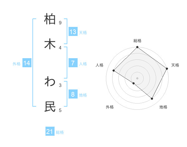 柏木 わ民さんを姓名の画数から五運を鑑定