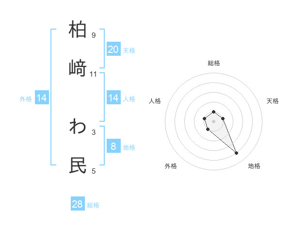 柏﨑 わ民さんの人格は14画の1点!