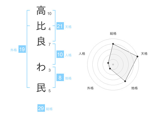 高比良 わ民さんの天格は21画の5点!