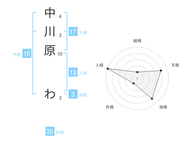 中川原 わさんの天格は17画の4点!