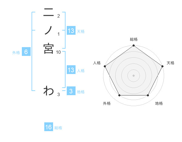 二ノ宮 わさんを姓名の画数から五運を鑑定