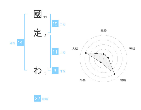 國定 わさんの総格は22画の1点!