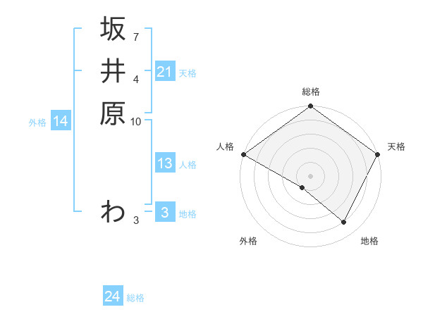 坂井原 わさんの総格は24画の5点!