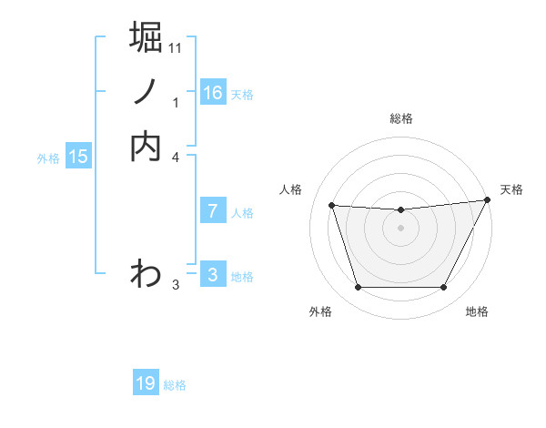 堀ノ内 わさんを姓名の画数から五運を鑑定