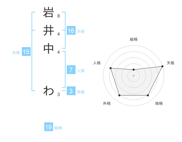 岩井中 わさんの天格は16画の5点!