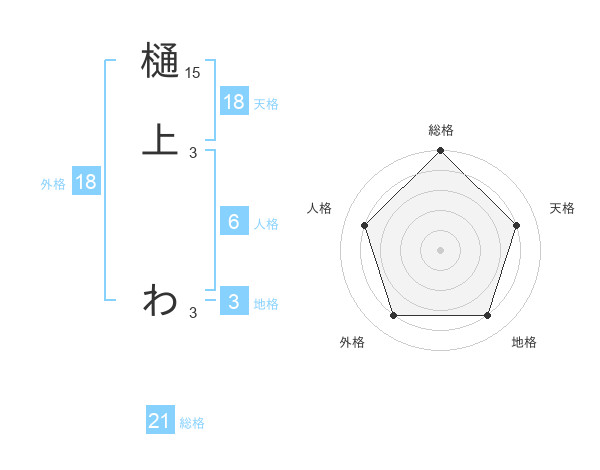 樋上 わさんの総格は21画の5点!