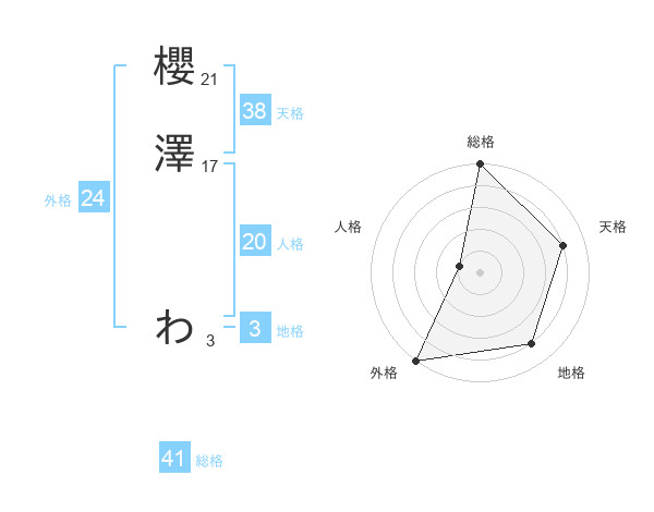 櫻澤 わさんの総格は41画の5点