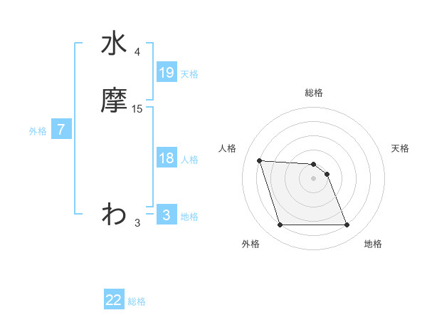 水摩 わさんの地格は3画の4点!