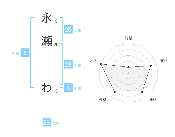 永瀬 わさんの外格は8画の4点!
