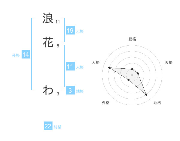浪花 わさんの総格は22画の1点!