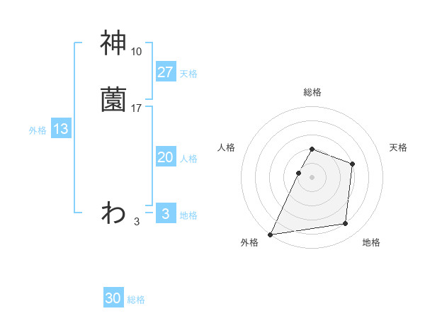 神薗 わさんの外格は13画の5点!