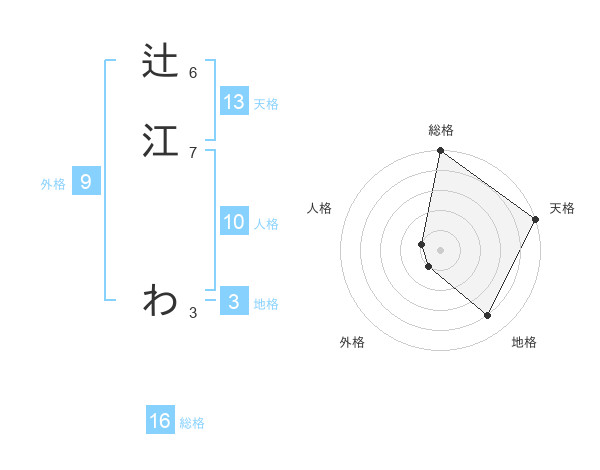 辻江 わさんの天格は13画の5点!