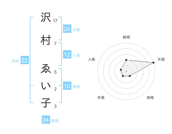 沢村 ゑい子さんの総格は34画の2点