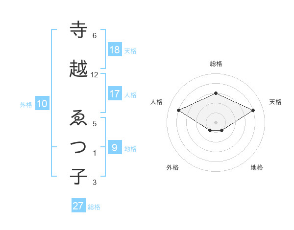 寺越 ゑつ子さんの総格は27画の3点!