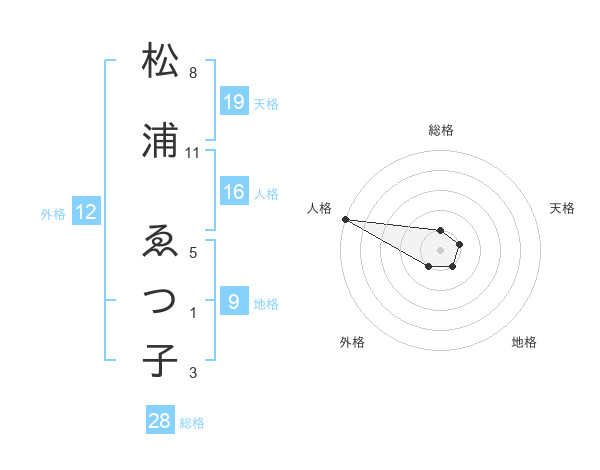 松浦 ゑつ子さんを姓名の画数から五運を鑑定