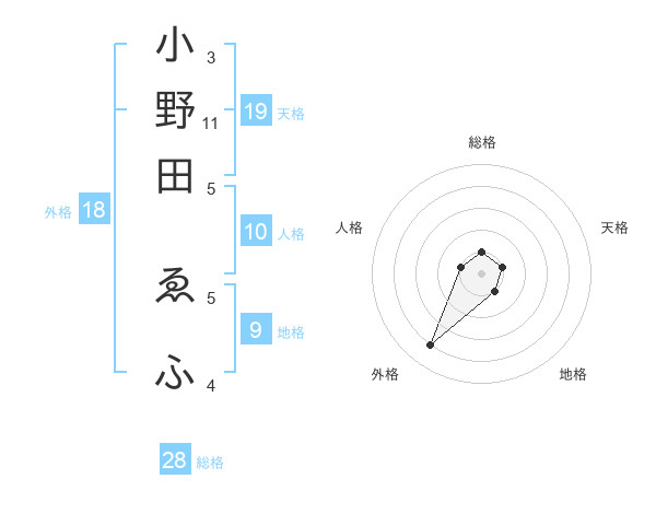 小野田 ゑふさんの外格は18画の4点!