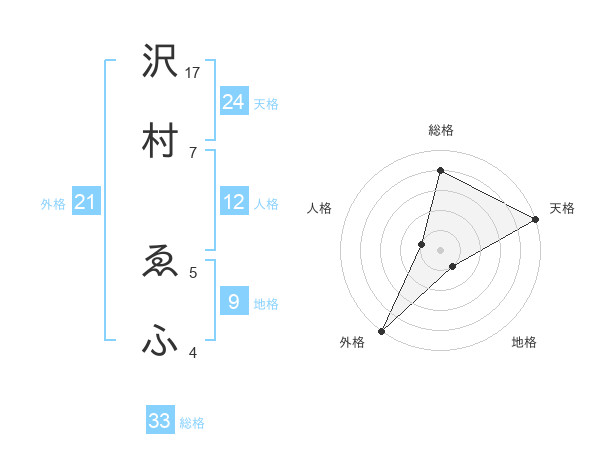 沢村 ゑふさんを姓名の画数から五運を鑑定
