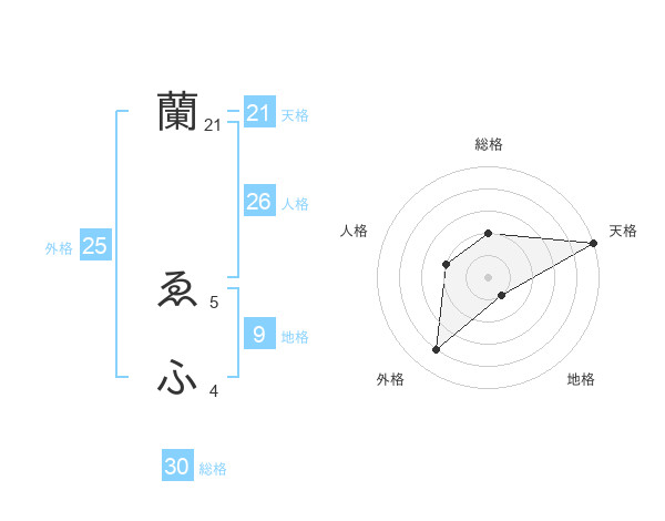 蘭 ゑふさんを姓名の画数から五運を鑑定