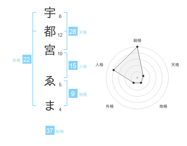 宇都宮 ゑまさんを姓名の画数から五運を鑑定