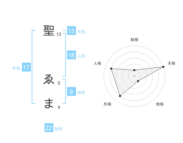 聖 ゑまさんの天格は13画の5点!