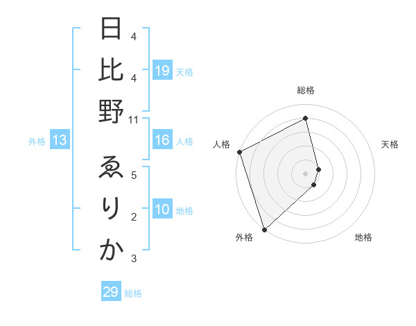 日比野 ゑりかさんを姓名の画数から五運を鑑定