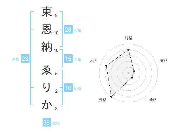 東恩納 ゑりかさんを姓名の画数から五運を鑑定
