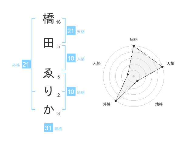 橋田 ゑりかさんを姓名の画数から五運を鑑定